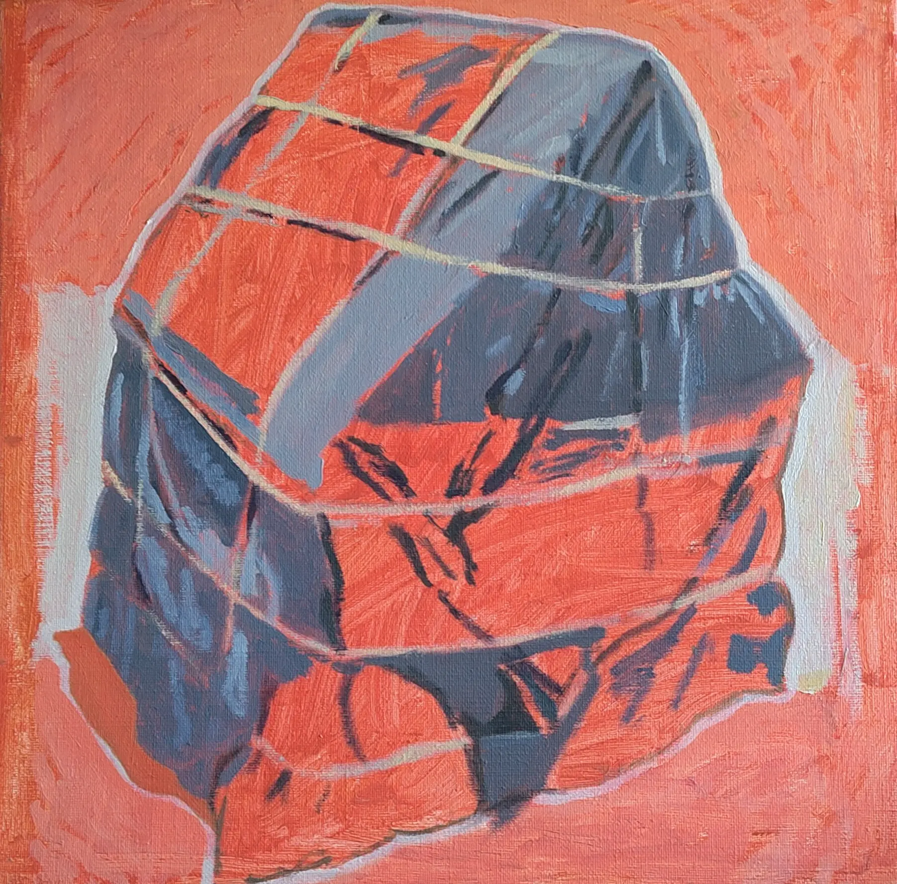 Žitnayová moves away from traditional painting techniques, experimenting in her series m³ admixture with materials added to colors to create new surfaces in her paintings, and she doesn't stop there, she continues to materialize them into objects. She created an alternative space for a childhood experience while studying the detailed fragments and structures that emerge from the canvas as if from the playground.